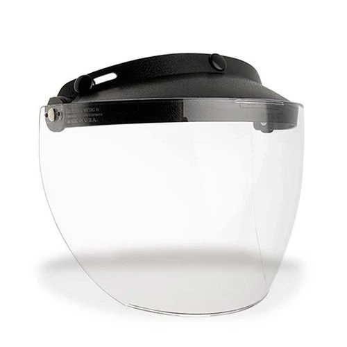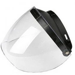 Compatible with most open face and half helmets that feature 3 snaps over the forehead. Will replace standard 3 snap visors. Ratcheting shield can be flip up and down to quickly and easy add wind protection.