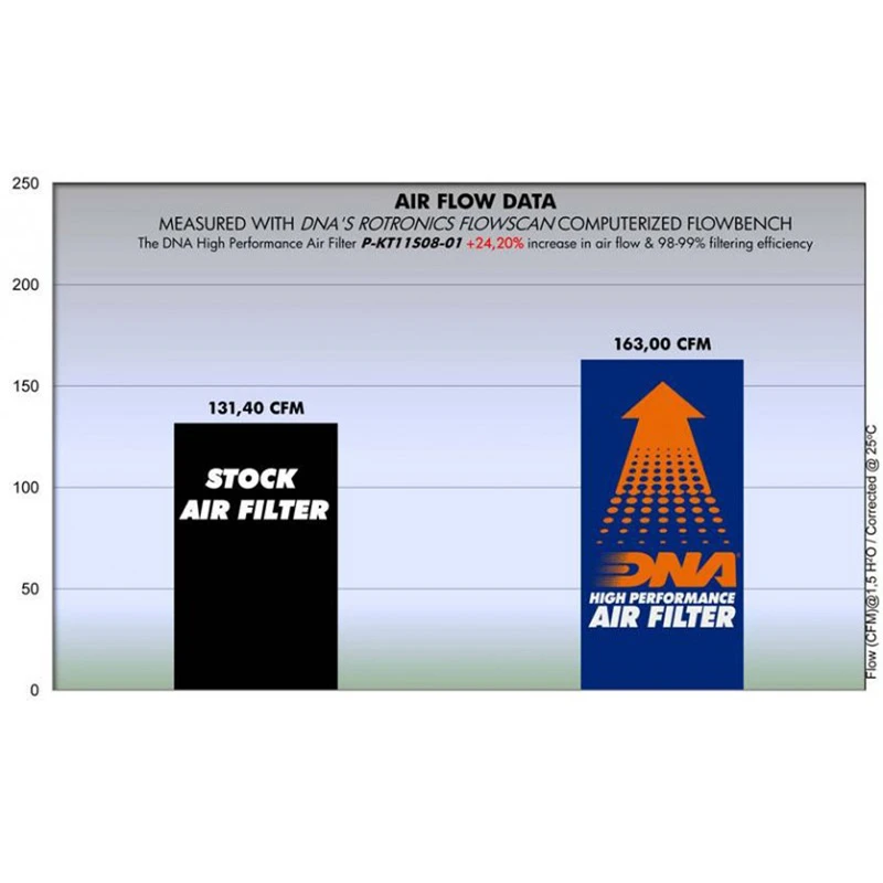 - The DNA filter has a 24% higher airflow than the KTM stock paper filter!