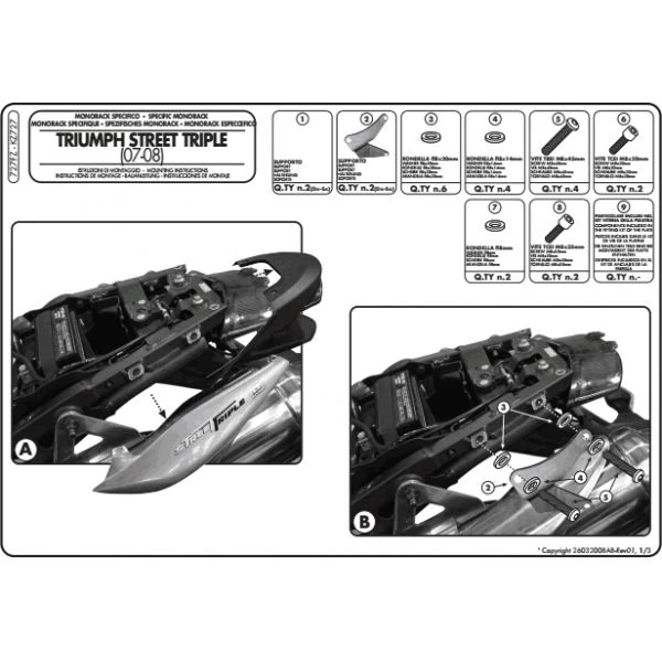 GIVI’s 727FZ Monorack Arms are made specifically for Triumph Street Triple 675 (2007-2012).