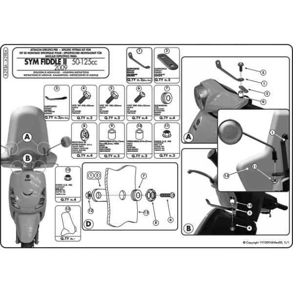 Givi A293A Windshield Fitting Kit For Fiddle II 50-125 ’09-’10