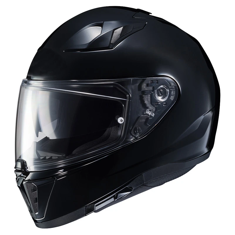 The i 70 from HJC is a full-face, DOT approved, sport-tourer helmet with a 3-position inner sun shield. The HJ-31 face shield easily locks down at the center and swaps out quickly thanks to the RapidFire II system. The HJC i 70 Helmet lets you stay cool and dry with 7 intake vents and 2 exhaust vents at the spoiler. Compact and lightweight, the i70 provides an excellent fit.