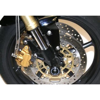 These R&G Racing FP0047BK Front Axle Sliders are made specifically for Triumph Daytona 675 (2006-2011) and Street Triple / R (2008-current).