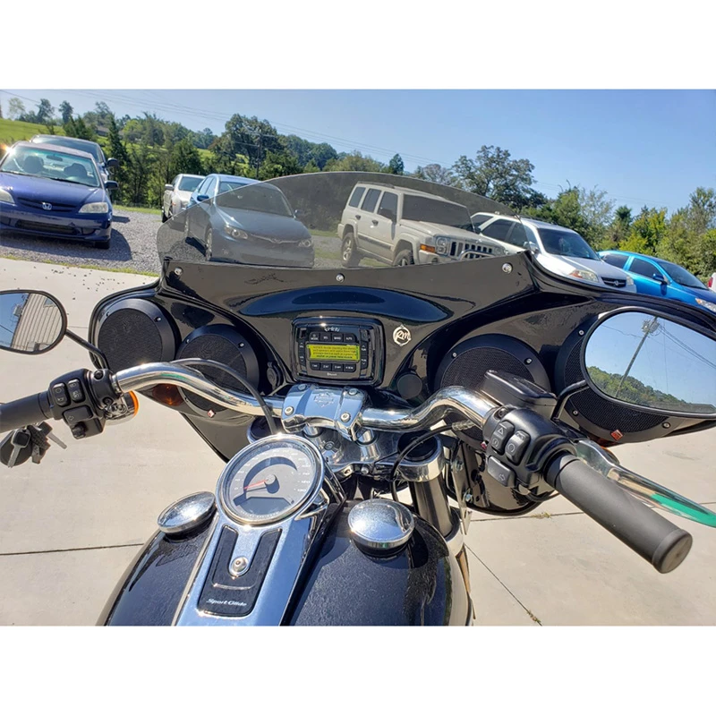 The Reckless Batwing fairing is offered with an optional Rockford Fosgate PBR400X4D amplifier to further enhance your listening experience. This amplifier is a full range 4-channel amplifier that is compact enough to come pre-installed inside of the fairing, but packs a punch with 400 Watts RMS power. The amplifier is recommended for riders who are often cruising at highway speeds with passengers or loud, aftermarket exhausts. Or, for those who are after a more powerful stereo system.