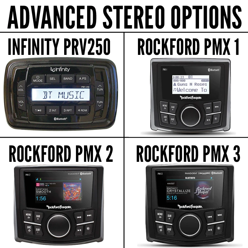 Infinity’s INF-PRV250 marine digital media receiver gives you plenty of ways to enjoy music on your fairing, plus the inputs you’ll need to expand your system later.