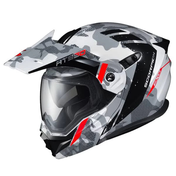 The EXO-AT950 can be used as a full face ADV helmet with external peak visor attached, or the peak visor can be removed and you have an aerodynamic touring helmet. Our oversized eye port is extremely wide for greater peripheral vision and downward visibility, and the modular chin-bar can be conveniently flipped up when you stop to get gas or ask for directions. The internal drop down Speedview® sunvisor and KwikWick® II liner will keep you comfortable all day long even as lighting conditions change throughout the day. Additionally, the no-fog Everclear® face shield can be removed and you can use the EXO-AT950 as a dirt helmet with goggles for off-road use. Three shell sizes made of Advanced LG® Polycarbonate and dual density EPS, result in a helmet that is light weight, strong, and protective.