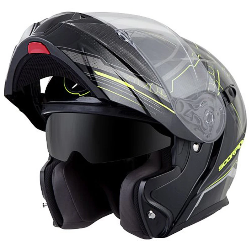 The dynamic Scorpion EXO-GT920 modular helmet benefits form a completely redesigned shell, providing a more aerodynamic profile and greater stability. Packed with all of the features required by the modern discerning rider, the EXO-GT920 comes equipped with a SpeedView drop-down sun visor, KwikWick II liner and aero-tuned ventilation.
