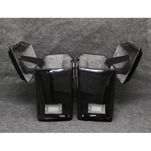 The HD Style Quick Release hard saddlebags for Sportster have 23 Liters of Storage Capacity for each side, come with Tsukayu side latches with LOCKS, this is the unique feature in market and allows fitting with Tsukayu Tour Packs with audio system. They also come with build-in LED turn signals since your stock turn signals have to be removed. They are mounted with Tsukayu new designed Quick Release brackets, you can easily remove them in just 2-3 seconds. Inside of the hardbags is carpet lined which protect your valuable stuff from scratching and bouncing inside the bags.