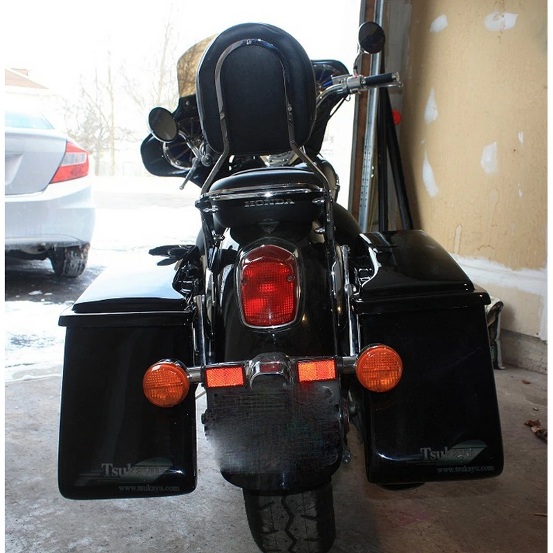 Note: Stock signals should be relocated for bikes with (*). “Patrol” saddlebags fit with backrests. If you are using a backrest which is attached to the fender struts, longer mounting bolts may be necessary.