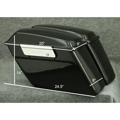 Patrol Hard Saddlebags perfectly follows the contour of your motorcycle fender. 25 Liters of Storage Capacity for each side of Hardbags and all Mounting Hardware you needed for installation. The bags come with side latches with LOCKS, this is the unique feature in market and allows fitting with Tour Packs with audio system. The inside is carpet lined which protect your valuable stuff from scratching and bouncing inside the hard saddlebags.