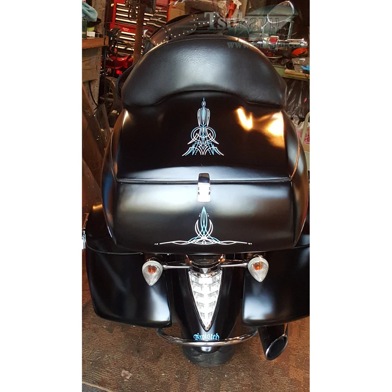 - Free style chromed plastic stripes match Roadliner perfectly. (Optional and removable). 72″L x 0.44″W strikes provided if ordered. You may cut it whatever you like, stick on the bags